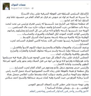 جيش الاسلام أوقف الدكتور نعمان الفوال بتهمة "النيل من هيبة الثورة والمؤسسسات الثورية"... وذلك بسبب بوست قارن فيه بين المؤسسات الثورية ونظام الأسد... وكرد على النيل من هيبة الثورة، قامت المؤسسات الثورية بعمل نسخة طبق الأصل عن ما كان يفعل نظام الأسد... سجن الرجل والتأكيد على أن القضاء مستقل...