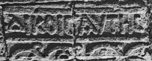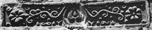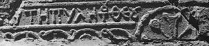 | النقوش البيزنطية الموجودة على واجهة مسجد أبو لبادة. من صفحة المهندس عبد الهادي النجار، 19.. |