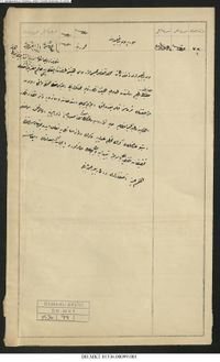 - بولنديغي، مابين همايونه باش كتابت جليله-سنه باتذكره خصوصية انبا ودفتر خاقاني وخزينه خاصه شاهانه نظارت جليله وعليه-لرينه دن تبليغات ايفا قلمش، ؟؟ نظارت جليله-رنجه ؟؟ بر منطوق أمر وفرمان همايونه شاهانه